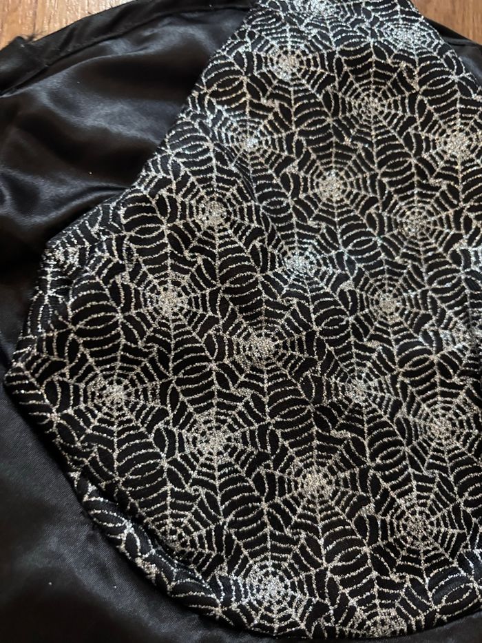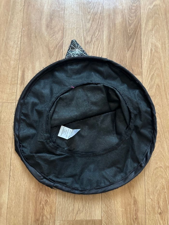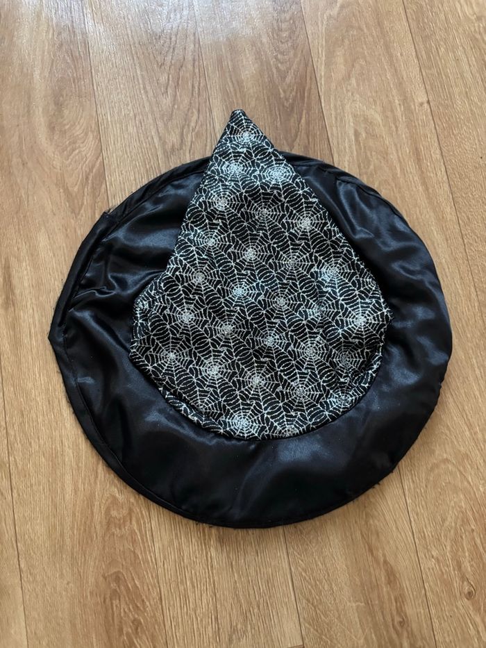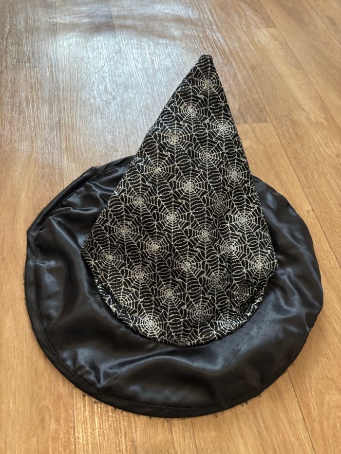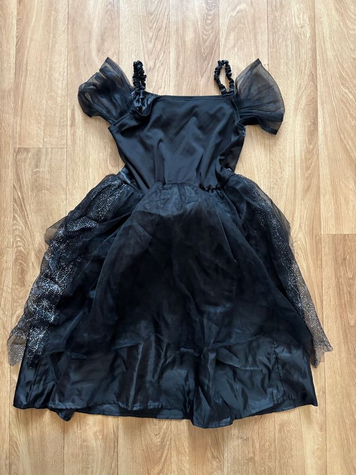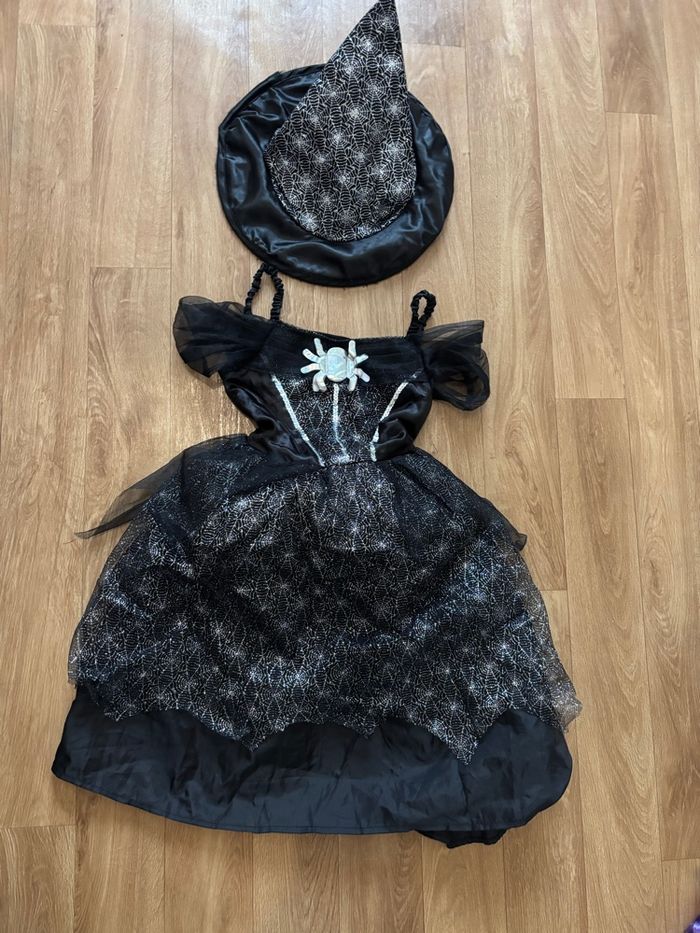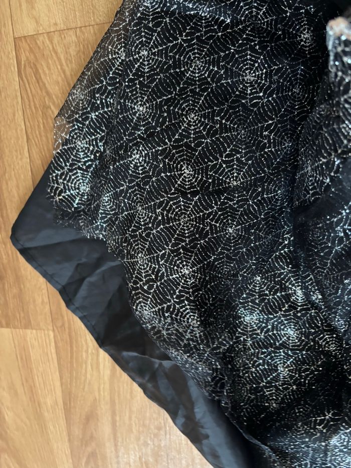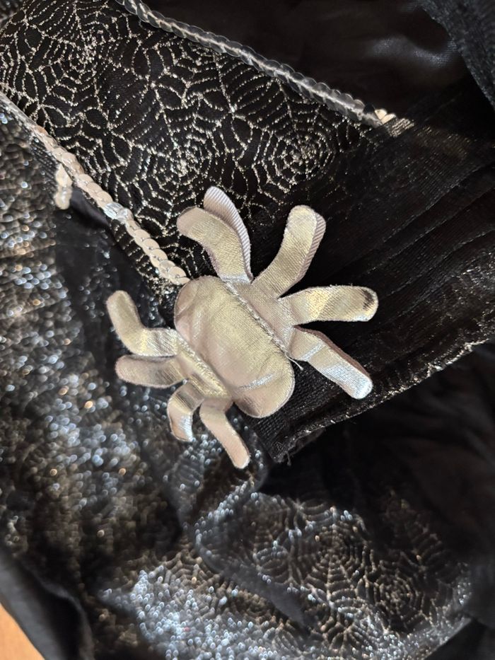 Je vends ce déguisement de sorcière pour fille de 6/8 ans Couleur : Noir/ argenté Caractéristiques : Robe avec motifs araignée et toiles d'araignées, Chapeau pointu Oxybul