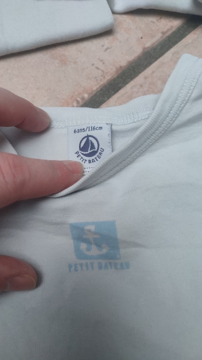 Vends lot de 4 t-shirts / maillot de corps de la marque Petit Bateau. Très bon état Couleur blanc un peu terni, logo bleu. Quelques logos légèrement effacés.