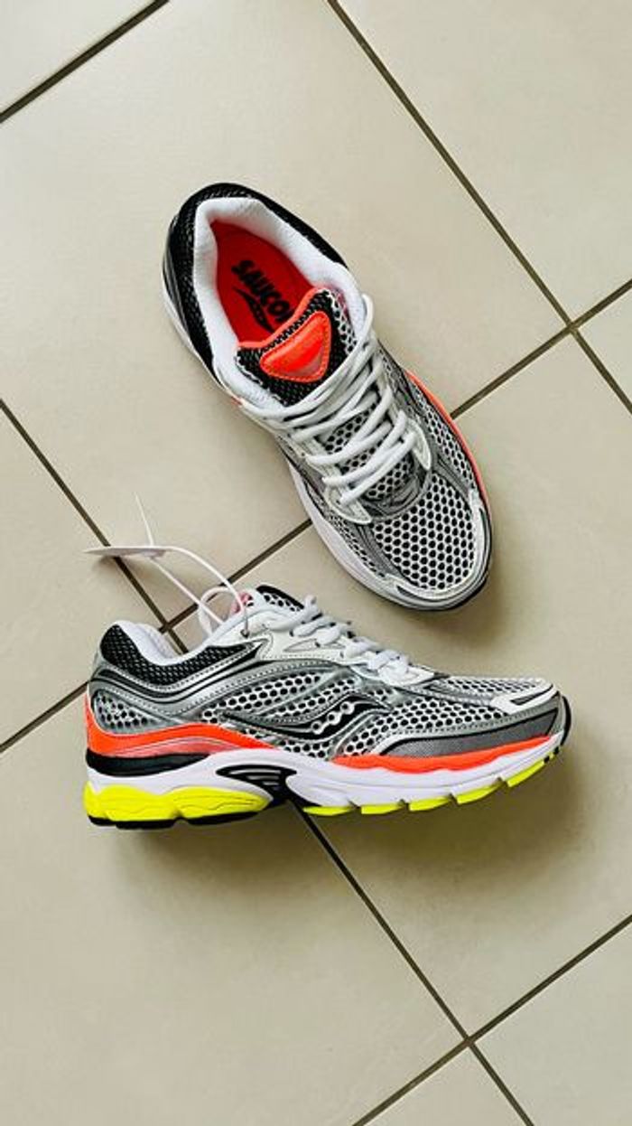 Baskets 👟Saucony progride omni 9, couleurs argenté orange et jaune, taille 44, neuf jamais porté. Plus d’informations sur demande. ⭐️Condition : 10/10 📏Taille : 44 🎨Couleur : argenté orange et jaune 📦Expédition rapide et soignée