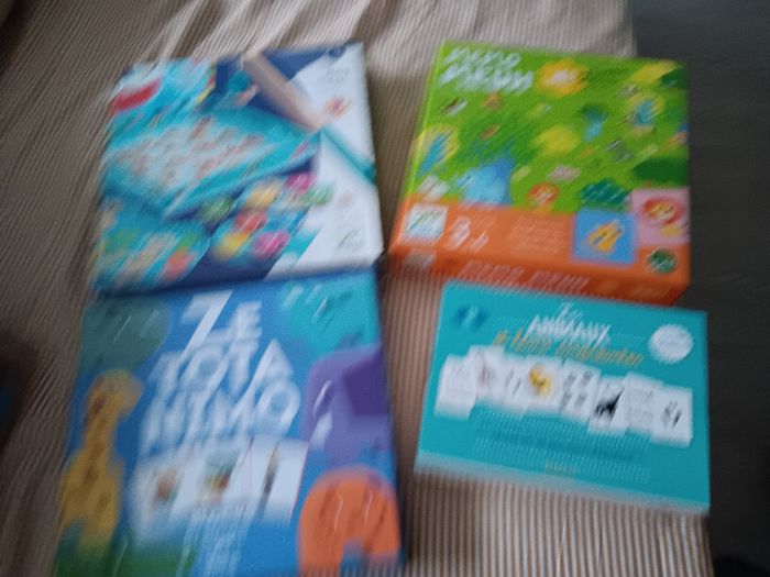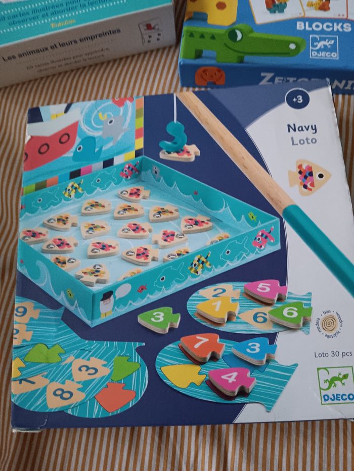 Lot de jeu 35€ ou a l'unité Les animaux et leur empreinte 8€ Ze totanimo 10€ Pêche a la ligne 8€ (quelque carte corne) Memo meuble 10€