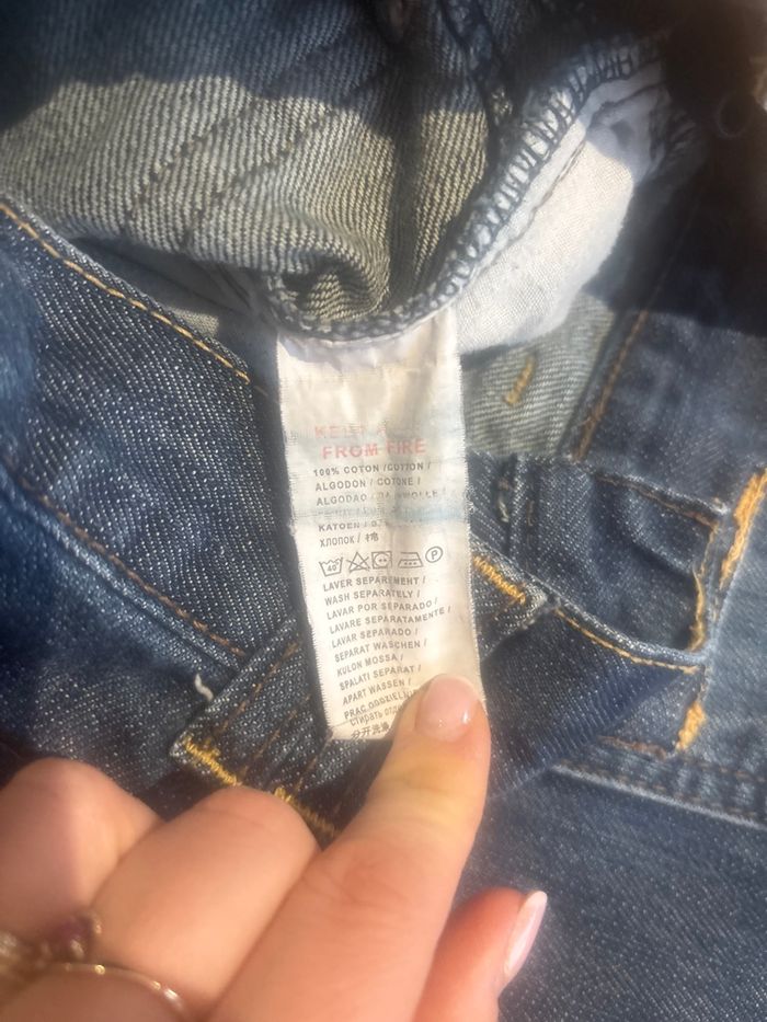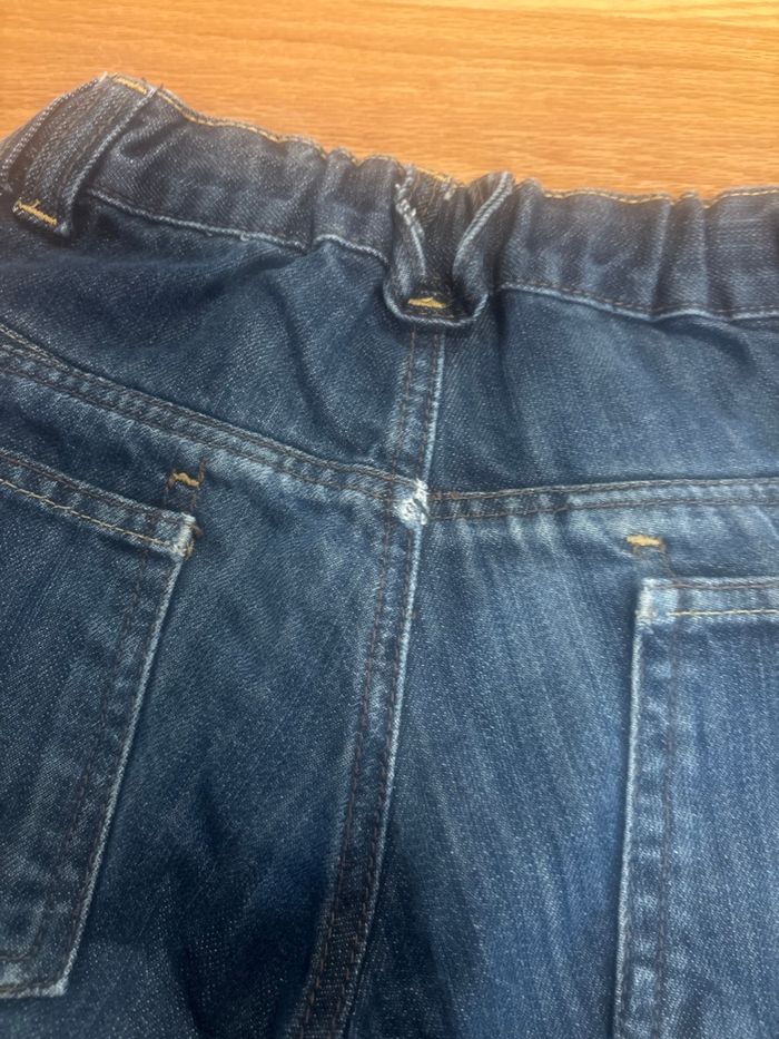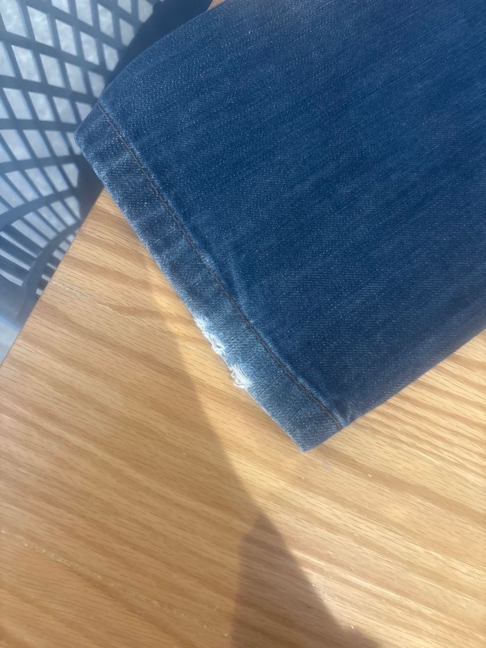 Abîmé en bas au niveau des deux jambes + au milieu de la couture à l’arrière sous la ceinture visible sur photos