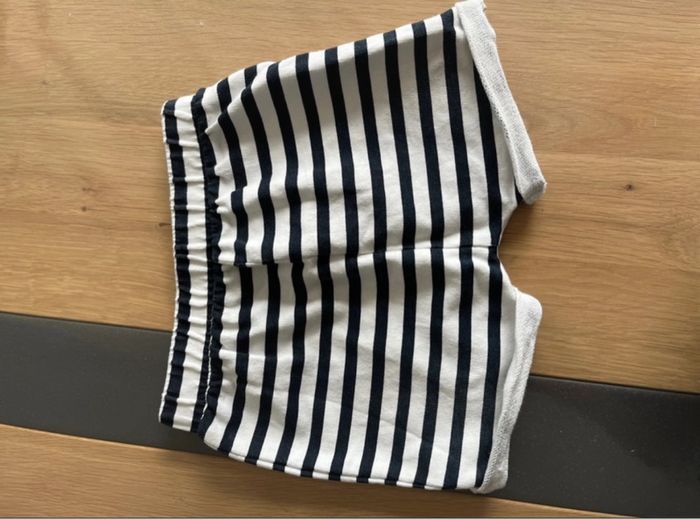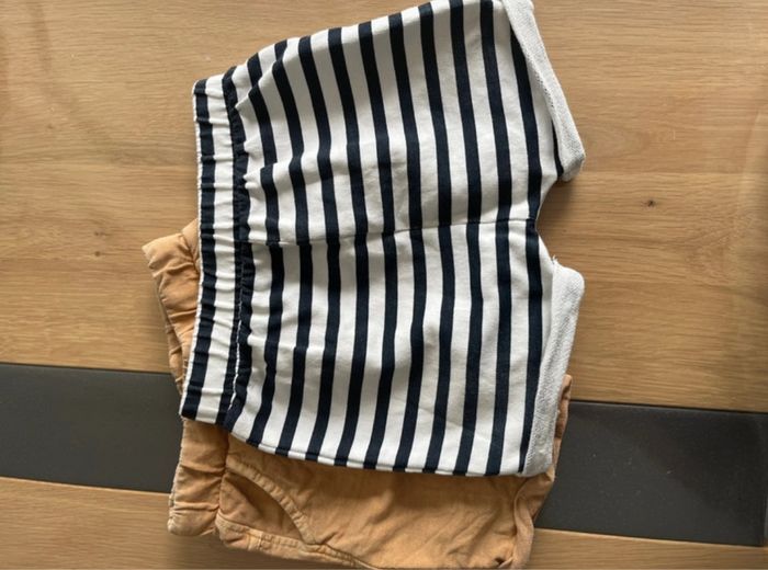 Lots de 2 shorts en 12 mois Le orange de chez orchestra Le rayé de chez kiabi Possibilité de mixer les lots, n’hésitez pas à me demander !
