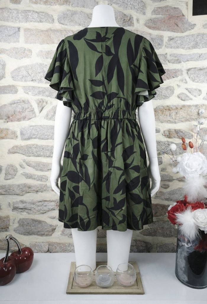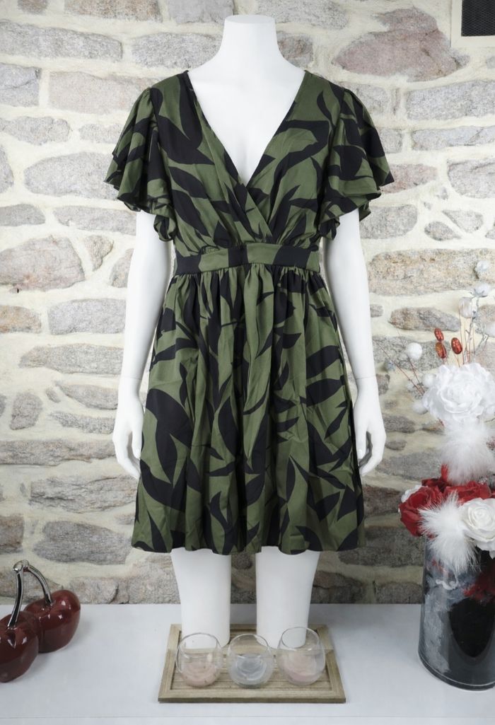 Robe patineuse d été manches courtes volantées verte militaire et noire Femme taille 54 marque Boohoo 🌺  - photo numéro 2