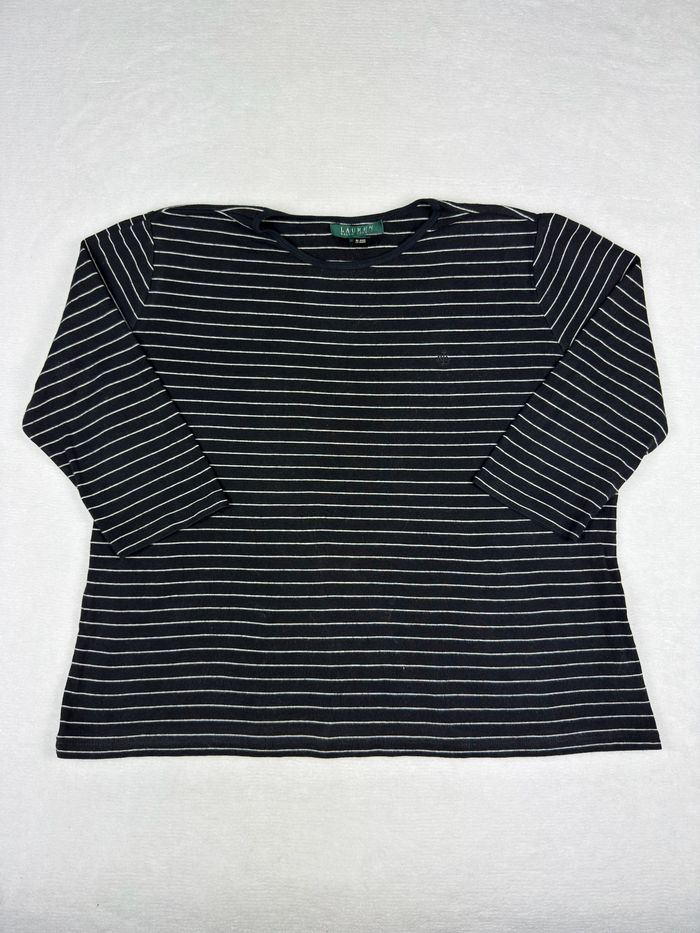 T-shirt rayé Ralph Lauren femme noir blanc taille XL manches longues coton 02425