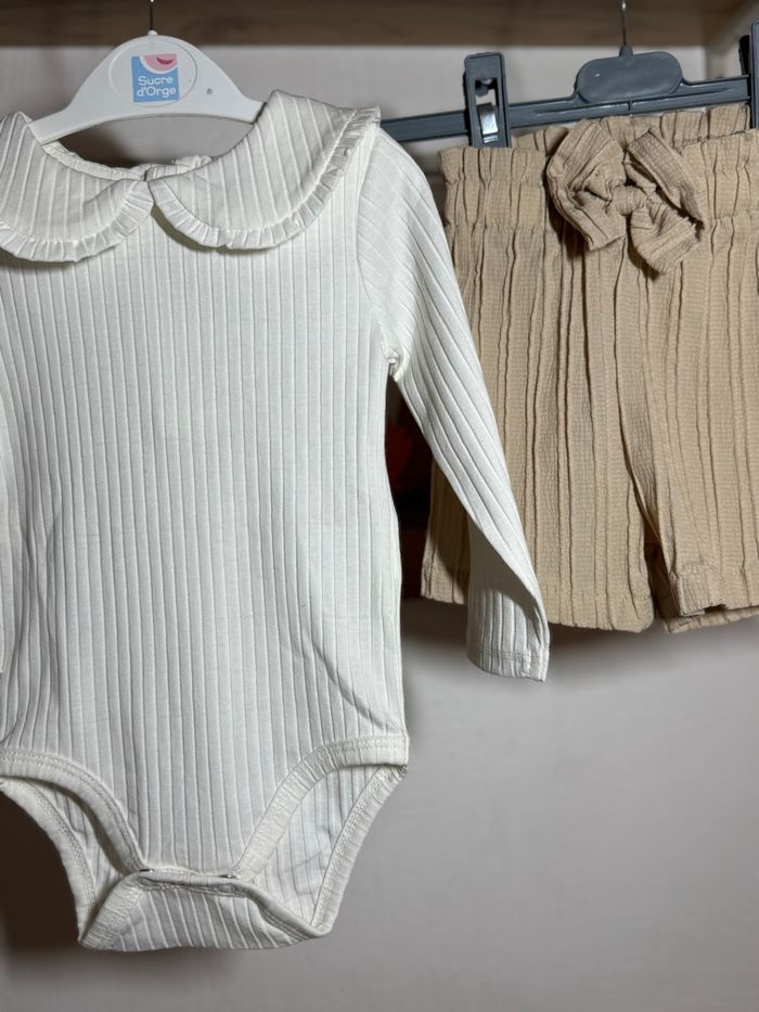 Ensemble bébé fille, bodie col Claudine & short • 9 mois  - photo numéro 1