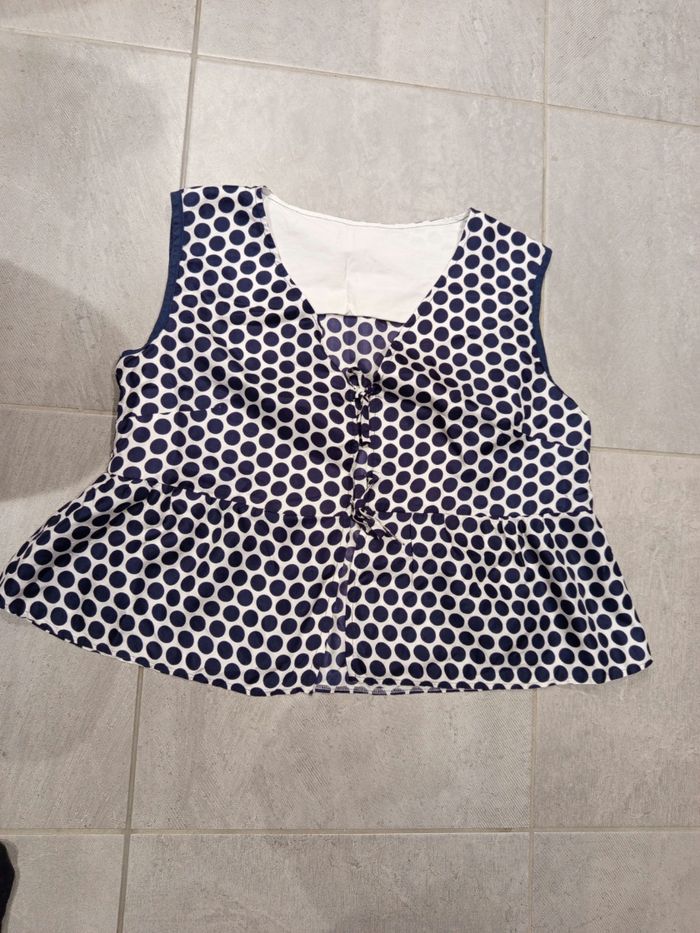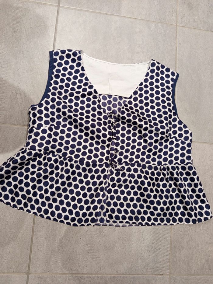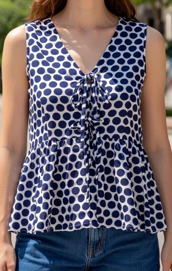 Blouse bleu et blanc à pois avec noeud a l'avant Vintage XL