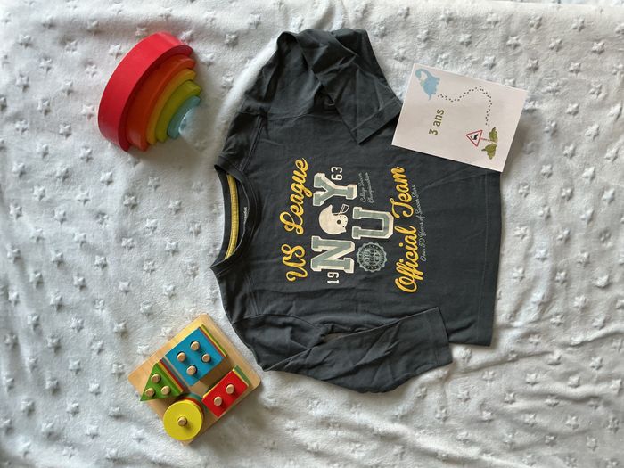 teeshirt manches longues gris inscription devant 3 ans vertbaudet - photo numéro 1