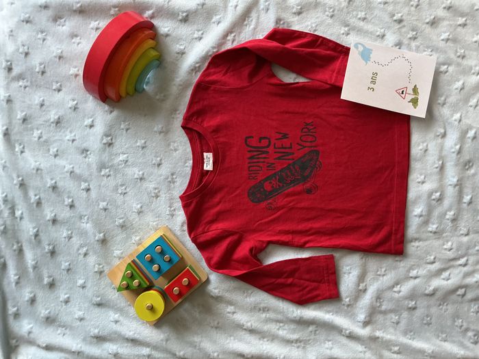 teeshirt manches longues rouge dessin devant 3 ans tape à l'oeil