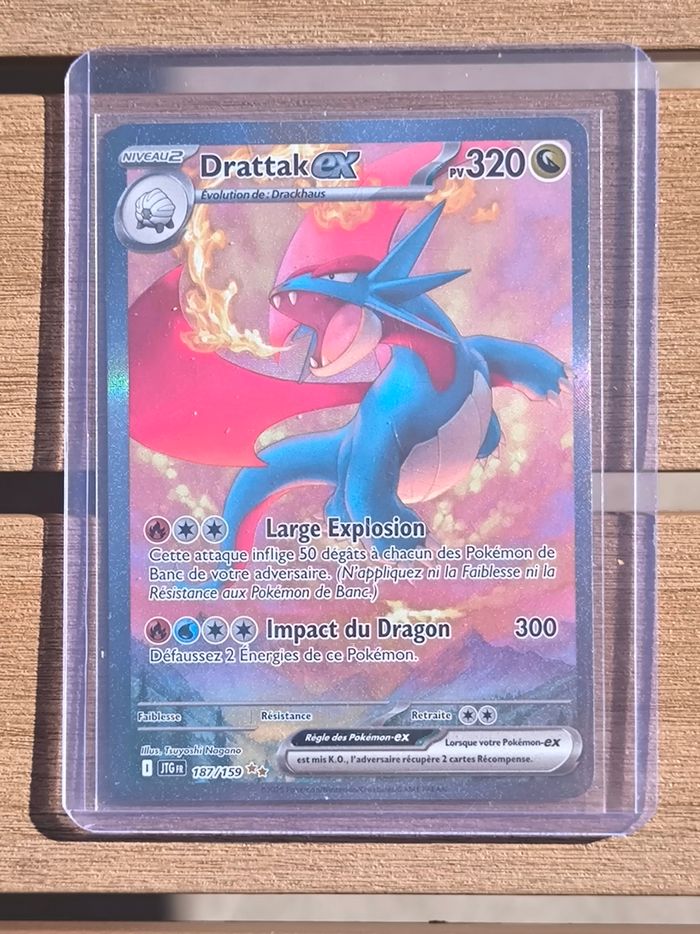 Je vends cette carte Pokémon EX Drattak, d'Aventure ensemble. - Type de produit : Jeux de cartes - Nom de la carte : Drattak EX 187/159 - Extension : Aventure ensemble - Échange possible État neuf / sortie de booster : sleeve + toploader