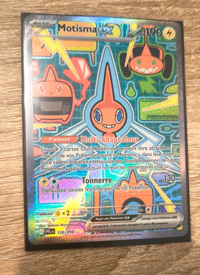 Je vends cette carte Pokémon EX Motisma, de Méga-Évolution Flamme fantasmagorique. - Type de produit : Jeux de cartes Pokemon - Nom de la carte : Motisma EX 126/094 - Extension : ME2 État neuf / sortie de booster : sleeve