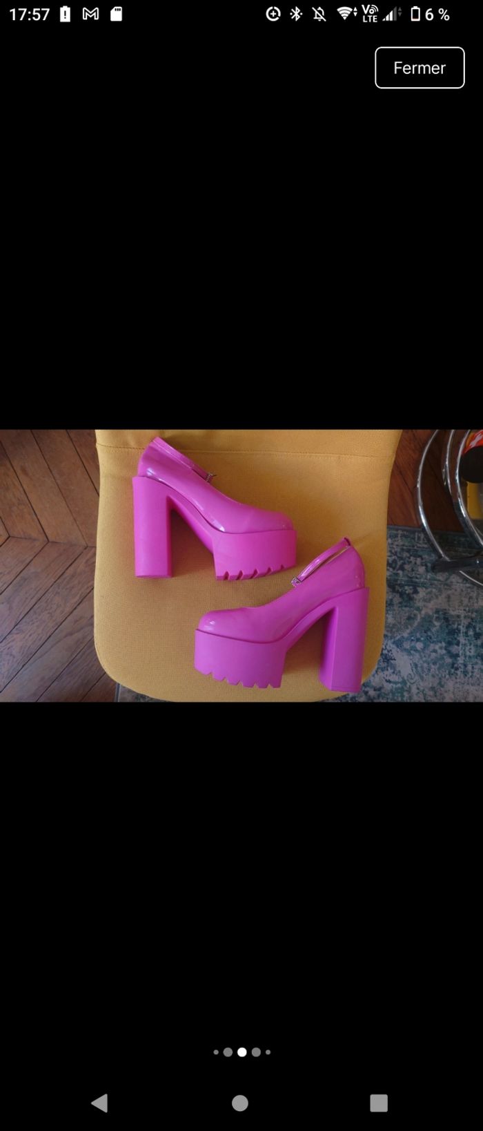 Hauts Talons Vernis Rose Barbie – Neufs (T. 37), 14 cm de folle hauteur ! 🔹 État : Neuf sans étiquette, jamais portés. 🔹 Taille : 37, standard, parfait pour celles qui aiment être à la fois élégantes et assumées. 🔹 Hauteur : Talon d’environ 14 cm + plateforme d’environ 5 cm, beaucoup de caractère, équilibré grâce à la plateforme. 🔹 Matière & couleurs : Cuir verni verni fuchsia / rose éclatant, effet “Barbie power”, très photogénique, parfait pour les soirées, les photos ou un look qui déchire. Niveau confort, la plateforme réduit la pente du pied = marche plus facile qu’un talon droit de 14 cm sans plateau. Neuf = qualité garantie + sensation du neuf (aucune trace, aucun compromis). Envoi soigné possible → emballage protecteur pour que le vernis reste impeccable. Remise en main propre envisageable sur Paris 17. Prix proposé : 15 €, soit une super affaire pour des talons neuf avec hauteur & style ! --- #TalonsRose #BarbieVibes #HauteTalon #Plateforme #Fuchsia #ChaussuresFemme #LookSoirée #NeufSansEtiquette #Taille37 #VerniShine #FashionStatement #SecondeMainStylée
