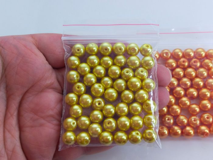 100 perles de verre 8mm nacrées 50 jaunes + 50 oranges Lot n°5616 - photo numéro 3