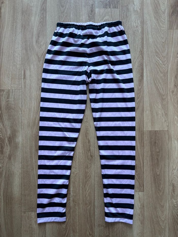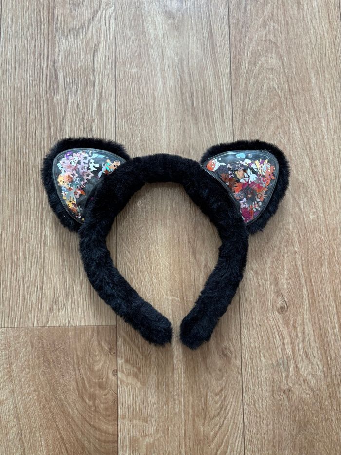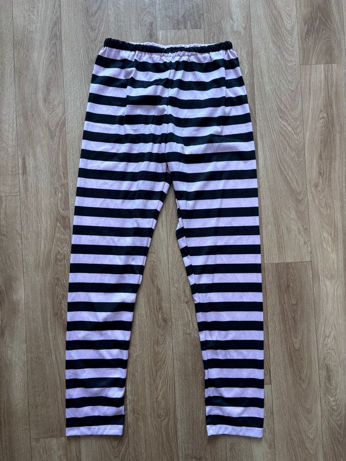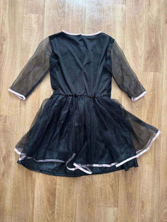 Je vends ce déguisement de chat noir pour fille de 7 à 10 ans. Couleur : Noir et rose Caractéristiques : Robe noire avec motif chat, legging à rayures roses noires , serre tête oreilles de chat en moumoute