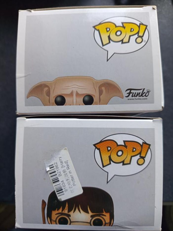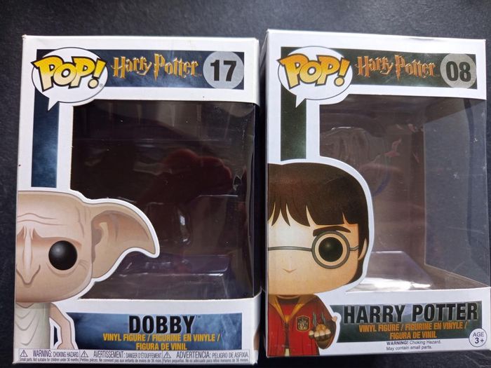 Les 2 boites sont vides, sans figurines mais il y a le "plastique" de maintient à l’intérieure. Elles sont en état correct/moyen, pas neuve. - Dobby - Harry Potter 17 - Etat correct. - Harry Potter - Harry Potter 08 - Etat correct/moyen. 2/3 taches sur le devant et un autocollant sur le dessus. Prix de 2 euros le lot, indissociable. Funko - Pop Ref perso : LM