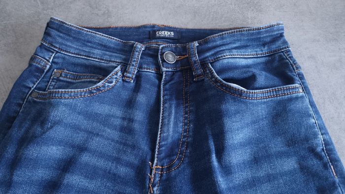 Jean de marque " Creeks " Uni bleu 2 poches à l'avant Fermeture Éclair + bouton Passant pour la ceinture 2 poches arrière 87% coton 12% polyester 1% élasthanne Taille 34-XS Très bon état À retirer sur place ou frais de port à votre charge Pour voir d'autres affaires : #fred5129_jeans Pour voir d'autres affaires : #fred5129_taille_xs