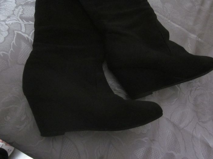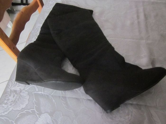 37, bottes tiges souples, toucher daim, talons compensés, état neuf