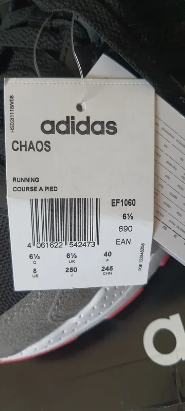 Baskets femme #Adidas Modèle "Chaos", pointure 40 Neuve avec étiquette, noir/gris