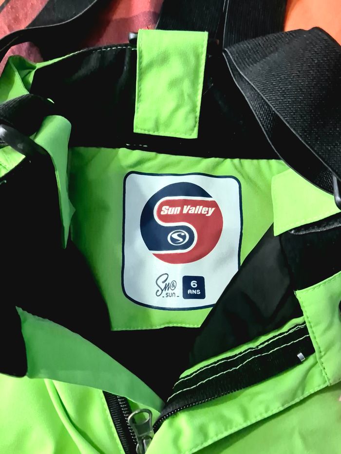 Ensemble de ski complet (Veste + Pantalon à bretelles) de la marque Sun Valley en taille 6 ans. ​Coloris vert fluo et gris : parfait pour repérer votre enfant sur les pistes en un clin d'œil ! 🎿 ​Points forts : ​Chaleur : Veste doublée polaire et bien isolée. ​Technique : Jupe pare-neige, poche forfait, poignets ajustables. ​Pratique : Pantalon type salopette avec bretelles réglables. ​État : Très bon état, prêt pour une nouvelle saison. Prix justifié par la qualité technique Sun Valley (imperméabilité et chaleur garanties) et l'excellent état de l'ensemble. ​Envoi rapide et soigné. ​#sunvalley #ski #ensembleski #combinaisonski #ski6ans #sunvalleykids #vetementsski #montagne #neige #skigarcon #skifille #fluo #securite #hiver #vacanceski #skitechnique