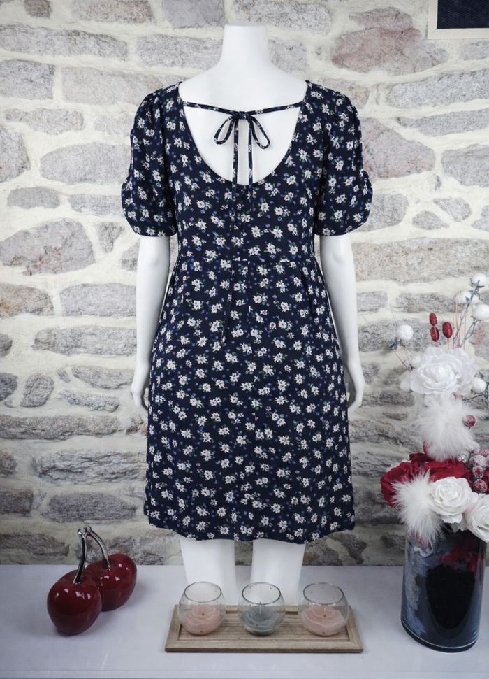 Robe élégance champêtre noire à petites fleurs blanches et violettes femme taille 52 marque Boohoo 🪷  - photo numéro 2