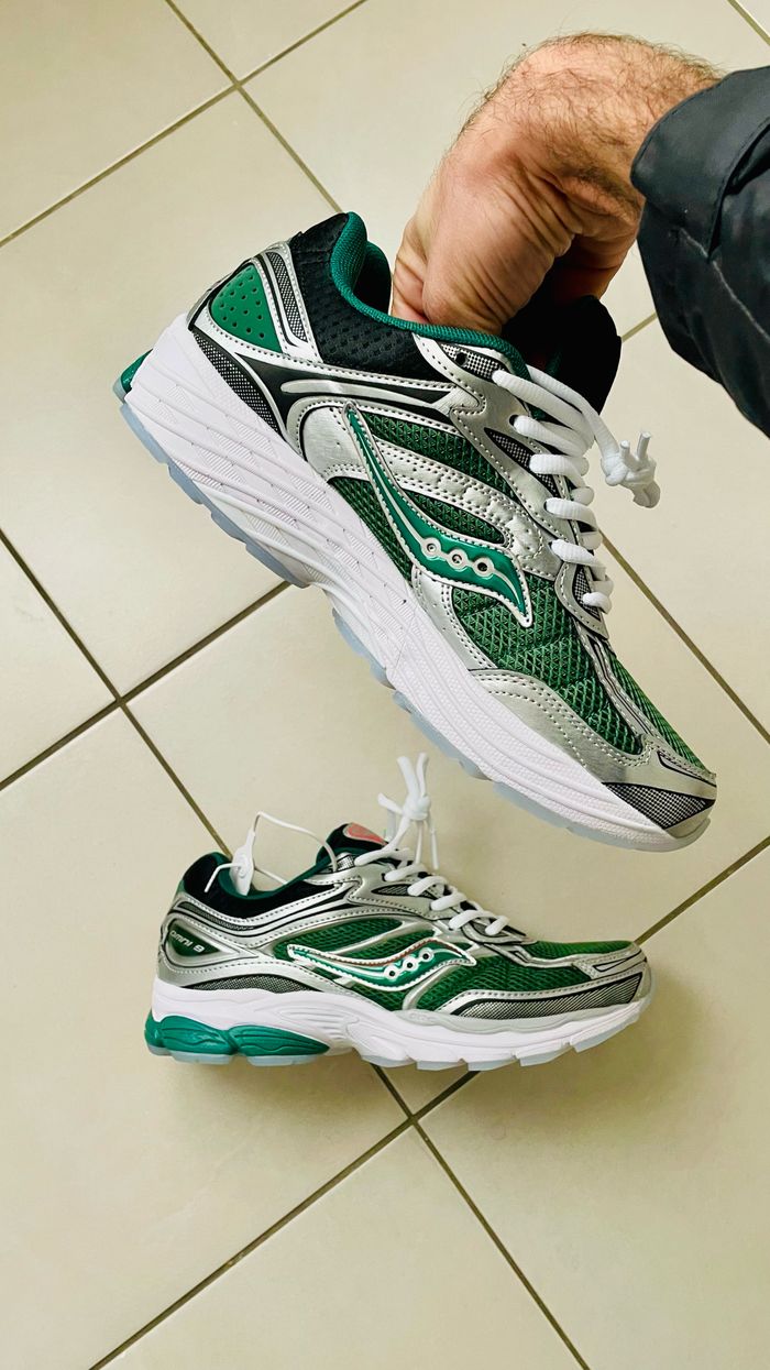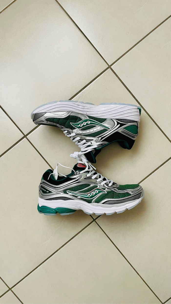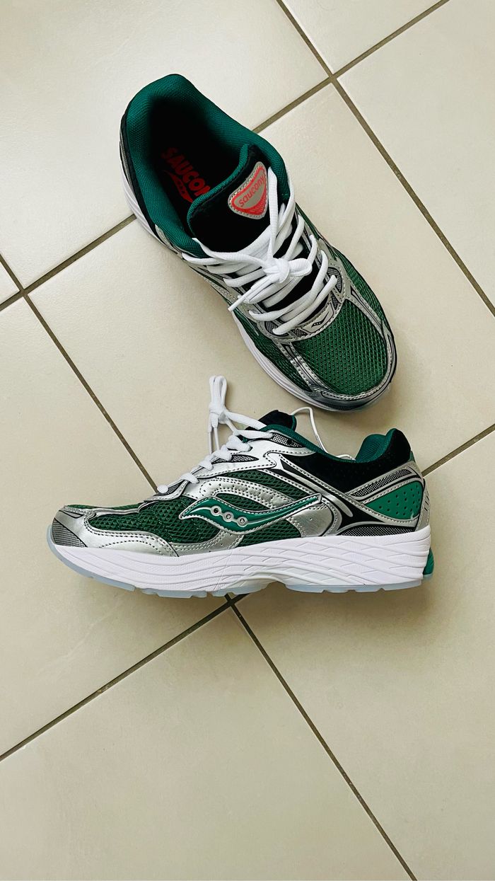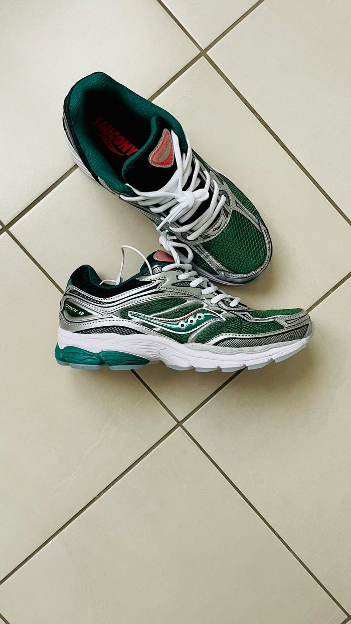 Baskets 👟Saucony progride omni 9, couleurs vert argenté et blanc, taille 44, neuf jamais porté. Plus d’informations sur demande. ⭐️Condition: 10/10 📏Taille : 44 🎨Couleur : vert argenté et blanc 📦Expédition rapide et soignée