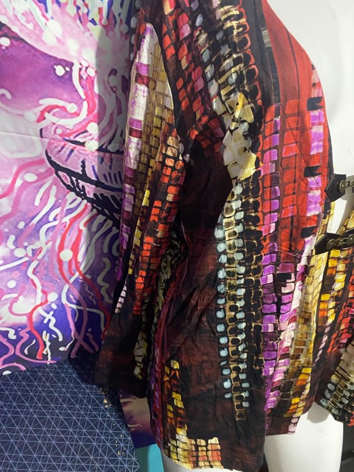 Peut se porter comme blouse avec un débardeur ou simplement comme gilet