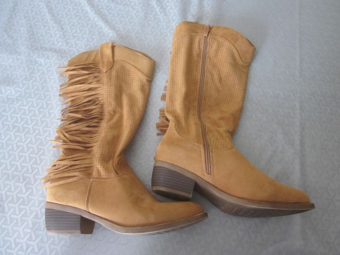 38, bottes type santiag, tiges souples, daim, état neuf, moda alice