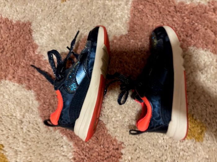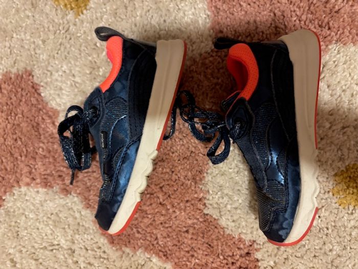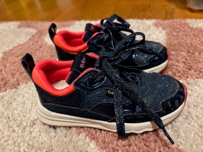 baskets kickers fille marine et rose néon pointure 28 excellent état, quasi non portées aucune usure toile à paillettes et cuir synthétique, lacets