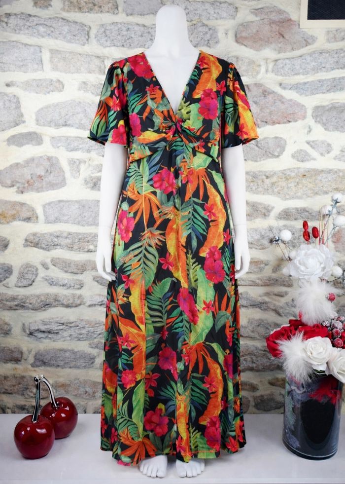 Robe longue jungle envoûtante du soir noir et multicolore Femme taille 54 marque Boohoo 🌺  - photo numéro 2