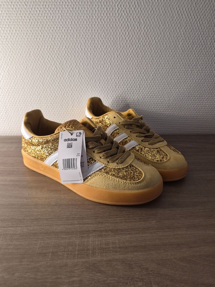 Bonjour je vend une paire d'adidas spezial doré, neuve jamais porté de taille 38,5. Envoi rapide et soigné ⭐️ ⭐️ ⭐️ ⭐️ ⭐️ À vos clics 😁