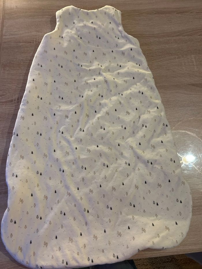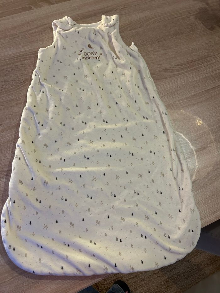 Gigoteuse de chez Kiabi sans manches mais bien chaude. En parfait état Taille 6-18 mois