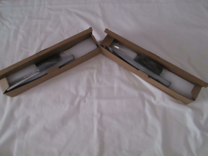 Vends lot de 2 appliques murales LED. Éclairage blanc froid. Longueur 42 cm. A poser horizontalement ou verticalement. Neuves, jamais utilisées. Prix d'achat : 25 € l'unité. Prix de vente : - 20 € l'une - 35 € les 2. Pour plus de choix, allez voir mes autres annonces.