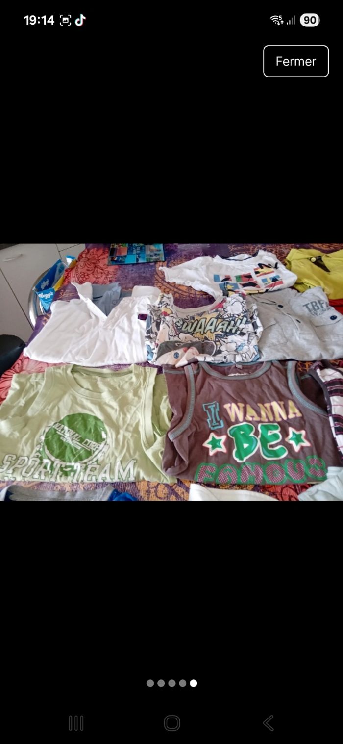 Lot de 24 t-shirts manches courtes Dont des Marcels et des polos Il y a du Mickey, lapin crétin, kiabi, sergent major, tape à l œil, oxbow... Tout en très bon etat