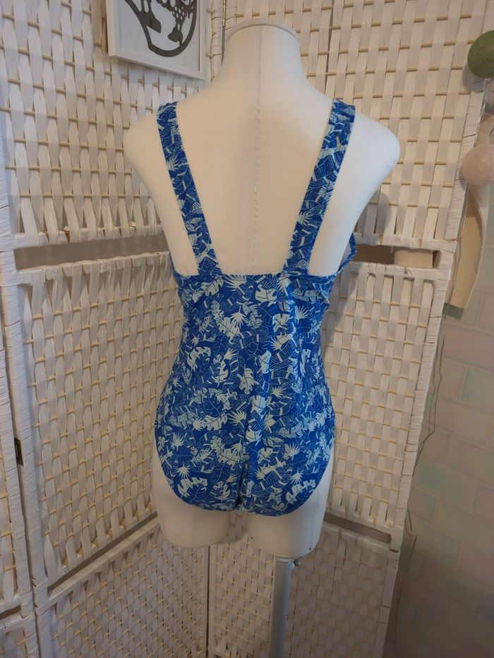 Joli maillot de bain 1 pièce bleu motif tropical inextenso femme T40