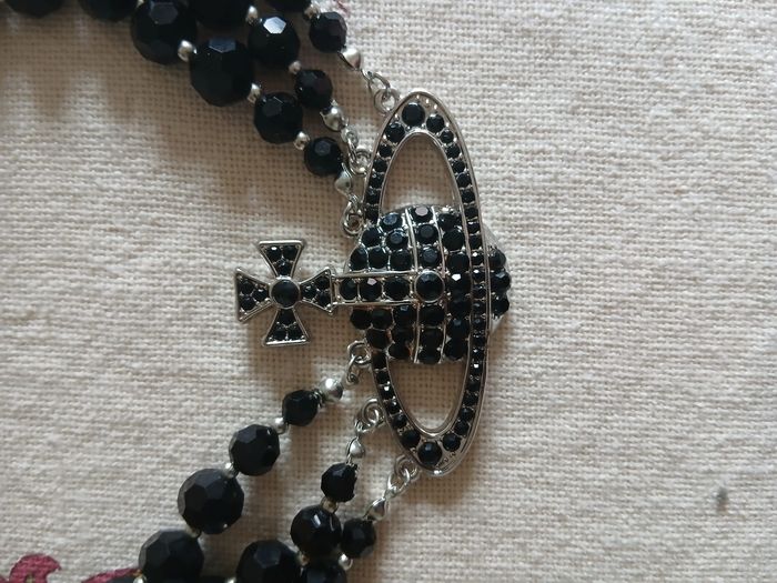 Collier perles noires Vivienne Westwood 🖤✨ Magnifique collier ras-de-cou Vivienne Westwood à trois rangs de perles noires facettées Trois rangées de perles noires brillantes effet cristal Pendentif Orb iconique en métal argenté, entièrement décoré de petites pierres noires Fermoir signature Vivienne Westwood à l’arrière Longueur totale du collier : environ 36–38 cm, porté ras-du-cou Taille de l’orbe : environ 4–5 cm de large, pièce bien visible autour du cou ✨ État : à préciser (comme neuf / très bon état), perles brillantes, aucune pierre manquante. 🚚 Envoi rapide sous 24h, bien emballé et protégé 📦💕 fais la même pour celui la Attachment 2548.jpg Collier perles noires Vivienne Westwood 🖤✨ Magnifique collier ras-de-cou Vivienne Westwood à trois rangs de perles noires facettées, parfait pour un look rock chic ou soirée. Trois rangées de perles noires brillantes façon cristal, qui accrochent super bien la lumière 🌚✨ Pendentif Orb iconique en métal argenté, entièrement décoré de petites pierres noires pour un rendu très sophistiqué Fermoir signature Vivienne Westwood à l’arrière, solide et facile à fermer 📏 Dimensions à indiquer sur Vinted (à ajuster selon tes mesures) : Longueur totale du collier : environ 36–38 cm, porté ras-du-cou Taille de l’orbe : environ 4–5 cm de large 🚚 Envoi rapide sous 24h