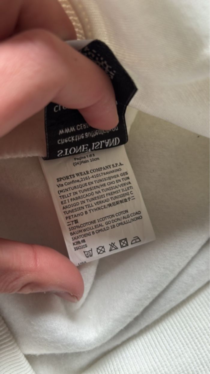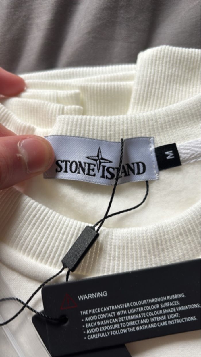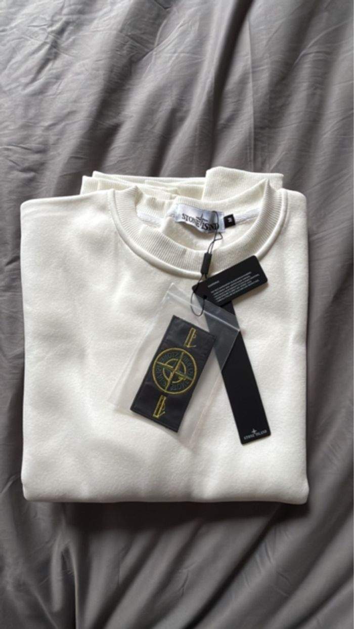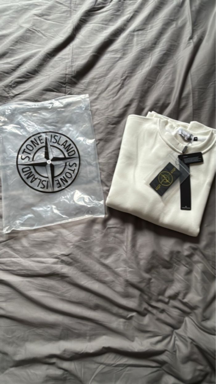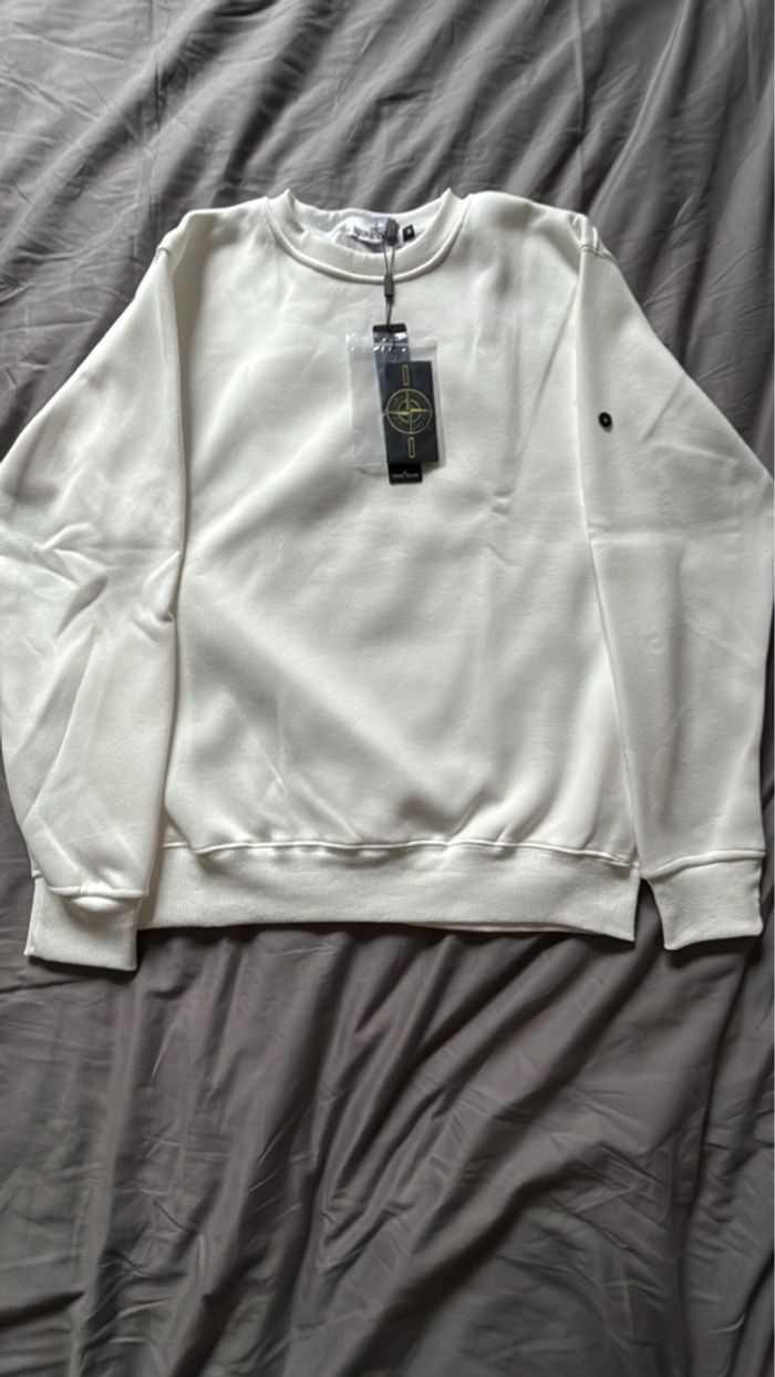 Sweatshirt Stone Island en blanc, neuf avec étiquettes visibles. Taille M. ⭐️ État : 10/10 🎲 Taille : M 🎨 Couleur : Blanc 📦 Livraison rapide et soignée.