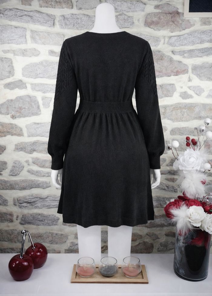 Robe pull en tricot maille torsadée noire Femme taille 52 marque Boohoo ✴️ Col rond ✴️ Manches longues ✴️ Maille torsadée ✴️ Couleur => Noir ✴️ Composition => 100 % acrylique ✴️ Longueur => 92 centimètres ✴️ Mesure épaules à épaules => 45 centimètres ✴️ Tour de poitrine => 118 centimètres ✴️ Tour de taille => 97 à 132 centimètres