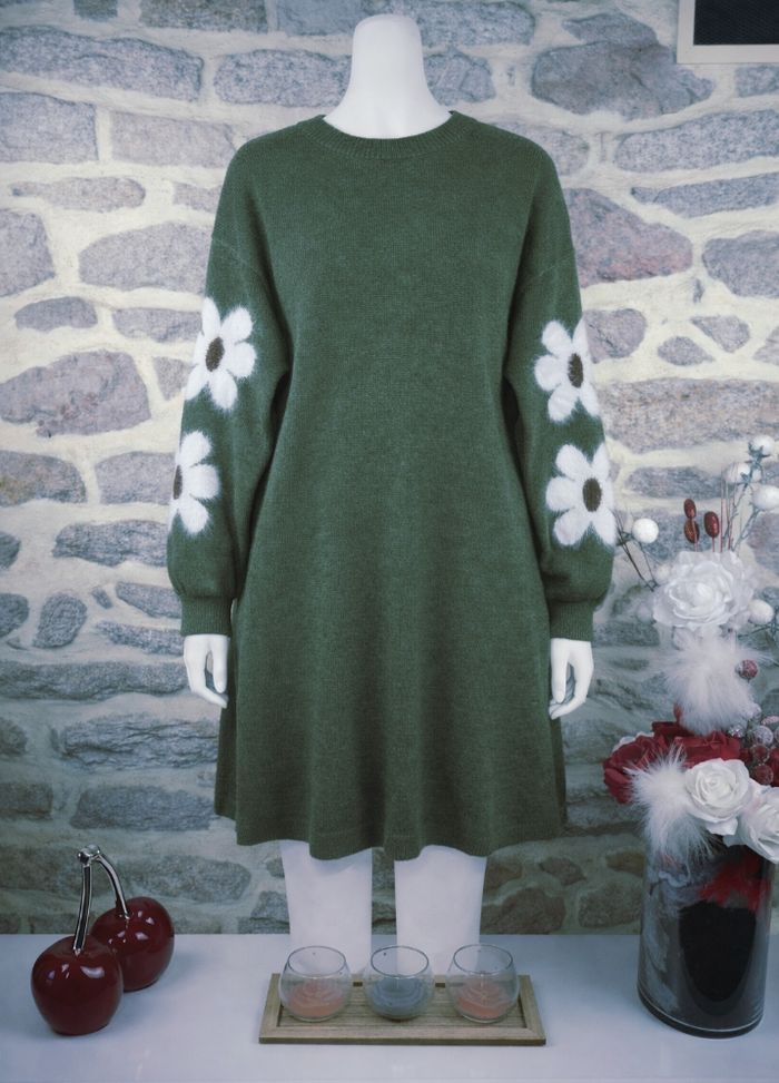 Robe pull en tricot vert militaire au motif marguerites sur les manches Femme taille 54 marque Asos 🌺  - photo numéro 2