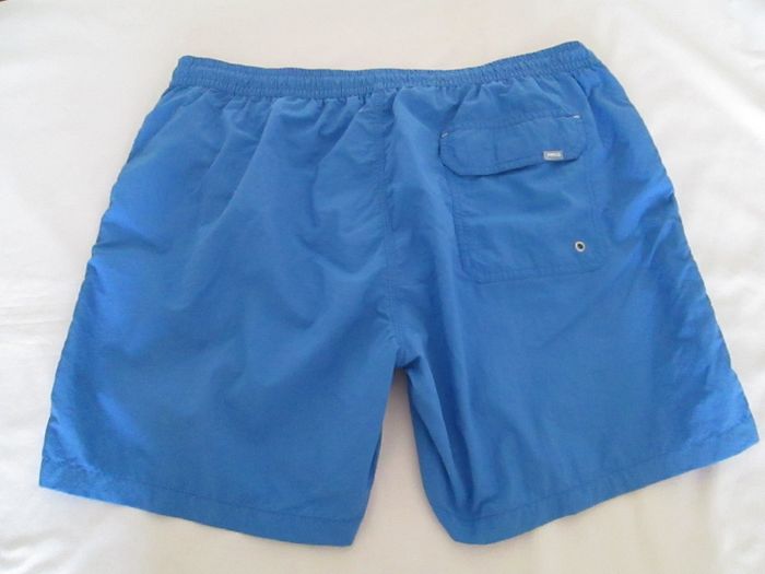 Vends short de bain Mango bleu. Taille entièrement élastiquée avec cordon de serrage. Poches des 2 côtés + 1 poche arrière à scratch + 1 petite poche intérieure devant. Taille XXL. Neuf, jamais porté. Pour plus de choix, allez voir mes autres annonces.