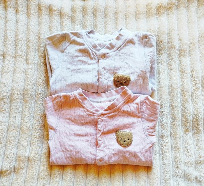 Lot de 2 pyjamas sans pied 100% coton 18 mois ouverture devant broderie ours