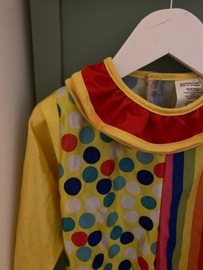 Joli déguisement en 1 pièce de clown pour bébé. Attaches scratch dans le dos. Taille 12-18mois Jamais porté, il est en parfait état