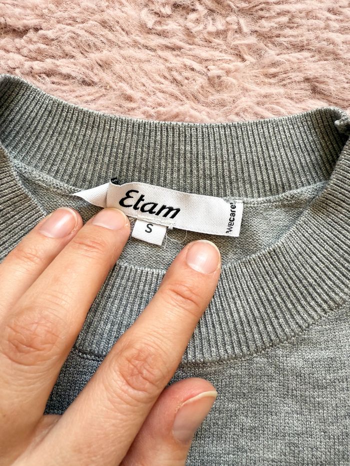 Pull gris à épaules bouffantes. Porté une seule fois, en excellent état.