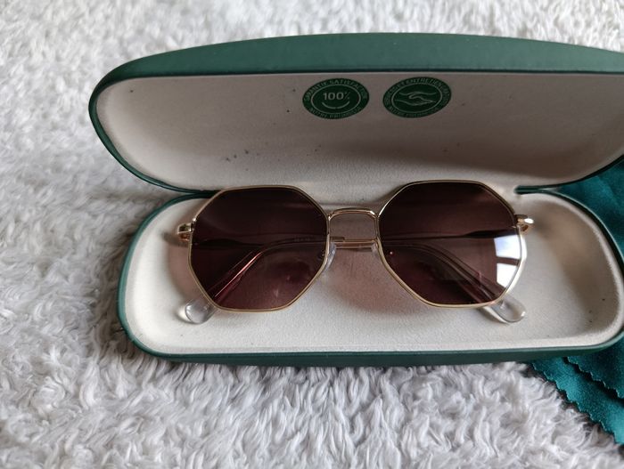 Jolie paire de lunettes de soleil de vue avec monture dorée, très élégante et tendance ☀️ 🕶 Monture dorée 🌞 Verres solaires correcteurs 📏 Distance pupillaire : 55 mm 🔎 Correction actuelle : • Œil droit : +1.00 • Œil gauche : +1.25 📦 Étui rigide + chiffon inclus ⚠️ Verres à changer selon votre correction. ✨ État : très bon état Parfaites si vous cherchez une belle monture solaire à petit prix pour faire adapter vos verres 👌 👉 Envoi rapide 📦 👉 Retrouvez d’autres articles dans mon dressing