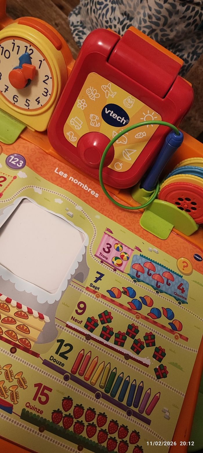 Bonjour, Je mets en vente ce superbe bureau / table d’activités interactive de la marque Vtech avec son tabouret, idéal pour les enfants en phase d’éveil et d’apprentissage. Fonction « 5 en 1 » (table, bureau, jeu de lettres, horloge, téléphone éducatif… selon modèle) : il propose de nombreuses activités éducatives et ludiques pour stimuler la motricité, la reconnaissance des lettres, des chiffres, des objets, etc. ✅ L’ensemble est complet (voir photos) ✅ Très bon état général : plastique propre, toutes les parties fonctionnent, aucune casse visible ✅ Convient pour enfant à partir d’environ 2 à 5 ans, selon le niveau d’activité ✅ Marque reconnue d’éveil et de jouets éducatifs : VTech, spécialiste du jeu électronique éducatif.  ✅ Remise en mains propres ou envoi possible À noter • Très belle surface de jeu, les éléments magneto/interactifs fonctionnent parfaitement • Quelques légères traces d’usage, mais rien de gênant pour le jeu Prix demandé : 40 €