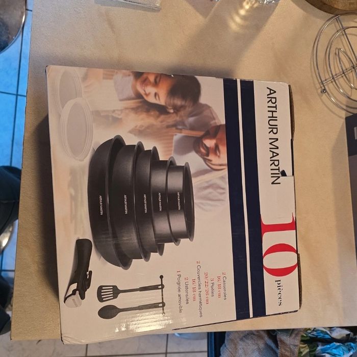 Neuf jamais ouvert 2 casseroles 3 poêle 2 couvercle hermétique 2 ustensiles 1 poignée amovible