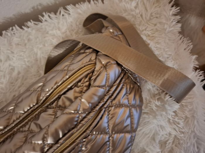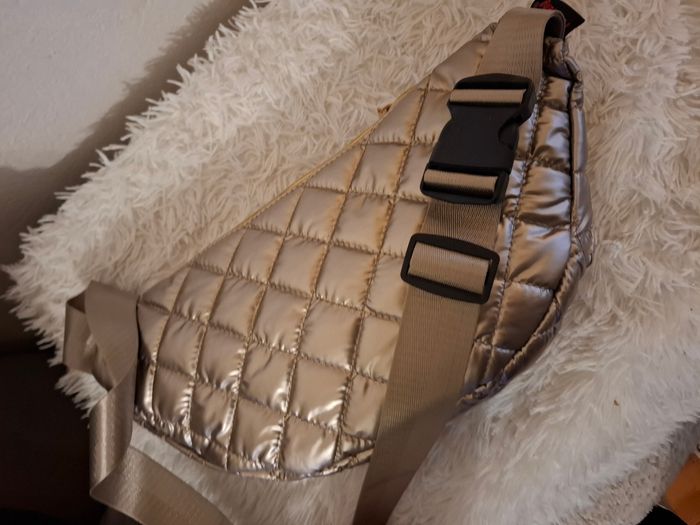Sac banane matelassé XXL Couleur bronze doré Dimension L 39 x H 18 x P 9 cm Longueur bandoulière 100 cm Jamais porté Valeur 49.90 € site zolena Envoi rapide et soigné