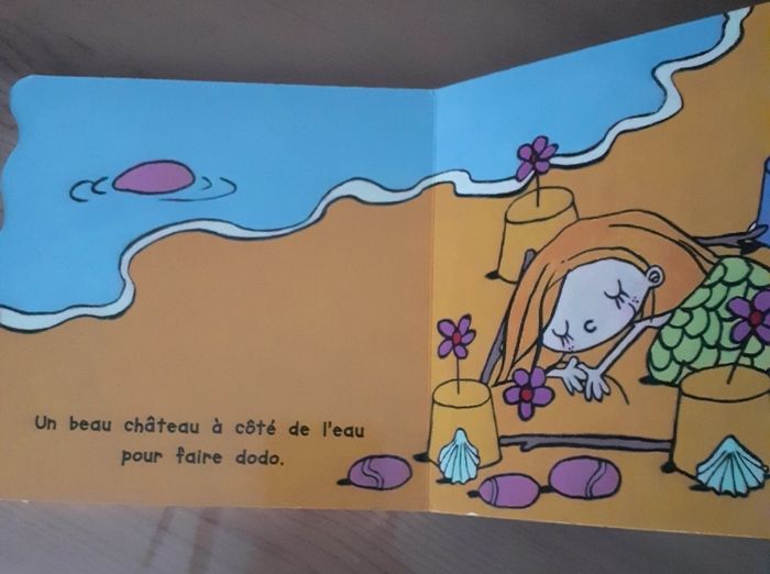 Je vends ce livre cartonné pour bébé. Résumé : La sirène trouve un seau, deux coquillages, trois cailloux ... Et puis se construit un château pour se reposer! Un album pour compter avec les tout-petits. - Titre : Livre cartonné pour bébé - Genre : Livre pour enfant - Condition : Très bon état N'hésitez pas à me contacter pour plus d'informations !