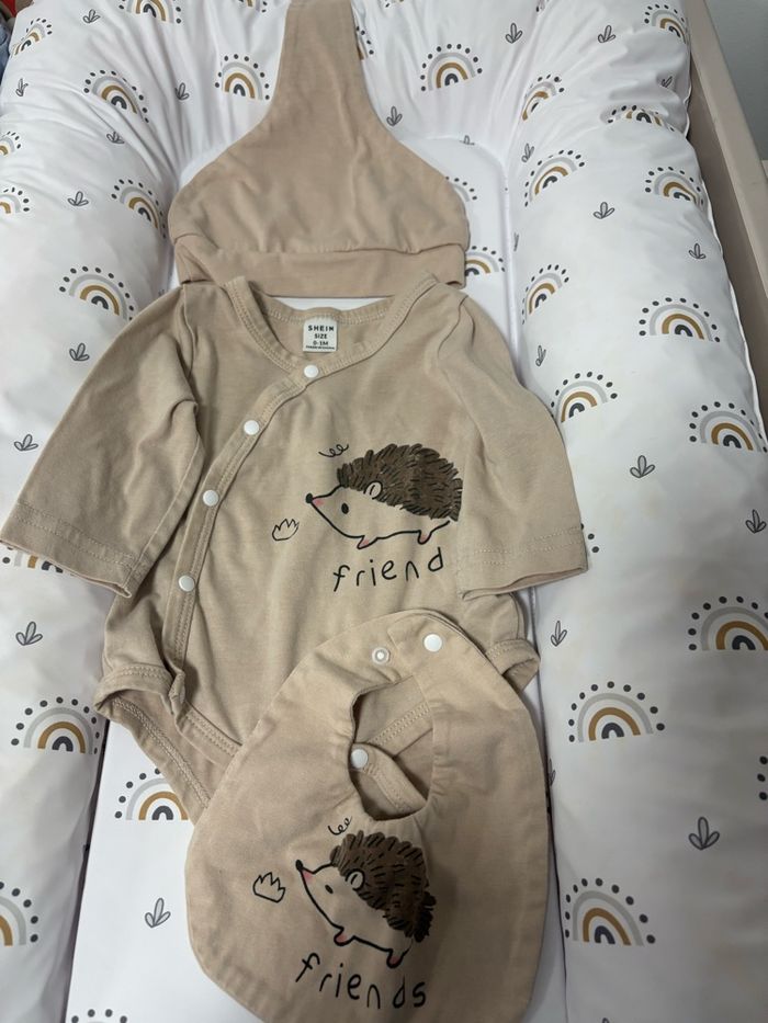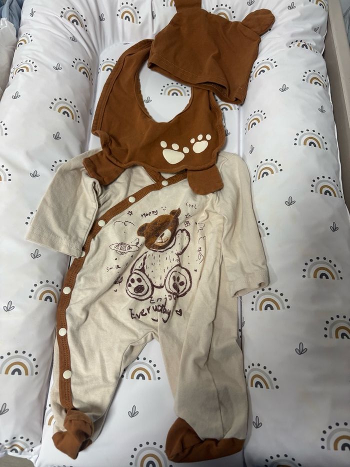 Vend 2 pyjama et et 1 body avec bonnet chausson bavoir comme sur les photos