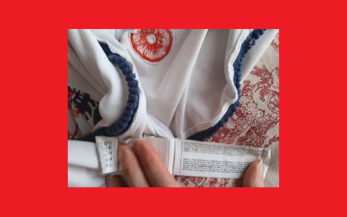 trou goutte d'eau dans le dos, fermé avec un bouton rond brodé, quelques sequins 68 % viscose 32 % polyester made in India