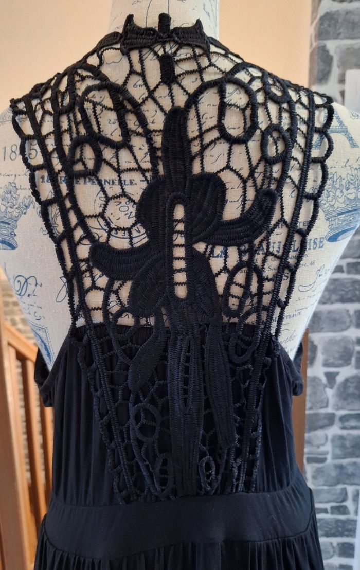 Robe sans manches noire fluide avec le dos en dentelle - photo numéro 6