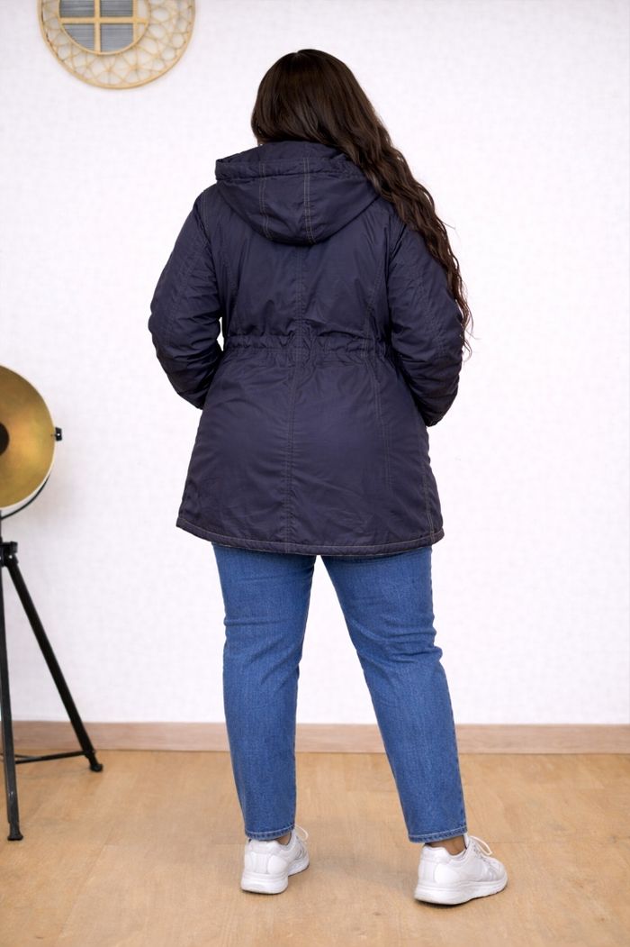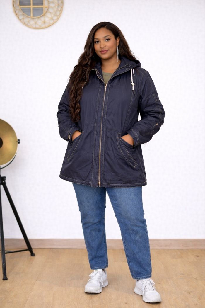 Jolie parka bleu marine, idéale pour la mi-saison et les journées fraîches. Coupe légèrement ample, très confortable et facile à porter au quotidien.
